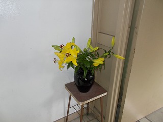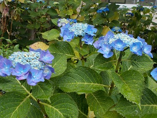 先日、保護者の方からユリをいただきました。ありがとうございました。昇降口で皆さんをお出迎えしています。また、中庭には、雨の中、あじさいが輝いていました。忙しい毎日、花を見てほっとするひと時を大切にしたいです。