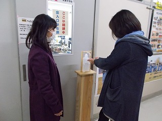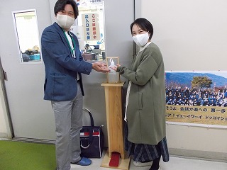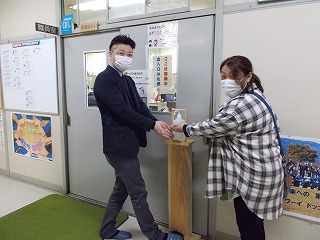 まだまだコロナ対応で気を抜けない日々が続いています。しかし、本校の職員室前の廊下には、技術の長嶺先生が作ってくださった「足ぶみ式消毒スタンド」が設置してあり、消毒をしながら、温かい気持ちをもらっています。先日、PTA役員の皆様にも使っていただきました。「すごーい。お店みたい」と喜んでくださいました。