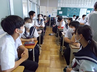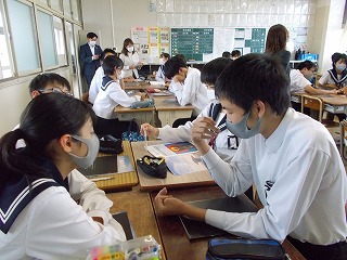 三菱UFJモルガン・スタンレー証券と教育と探求社の皆様にご来校いただき、3年生は「株の力」を通してプレゼン力を高めるプログラム(全6時間)を始めました。生徒たちは社員になったつもりで、チームに分かれて新聞広告を作成し、最終、プレゼンを行います。本日はオリエンテーションでしたが「自分が事業を起こすと考えるだけでわくわくしました」「会社にとっても、自分にとっても、社会にとってもよいことを考えたいです」など、さっそく生徒の意欲に火がついていました。