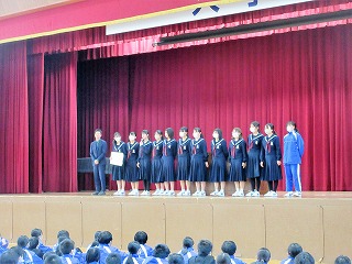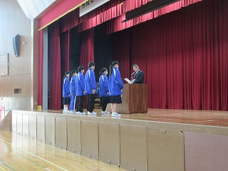 修了式では、校長より各学年の代表生徒に修了証が手渡されました。