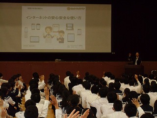 生活するうえで、必要不可欠となりつつある情報通信機器とのかかわり方について考えさせ、スマートフォンや携帯電話、インターネットを利用するときに正しい情報を集め、適切な利用方法を身につけさせることを目的として、携帯・スマホ安全教室を行いました。