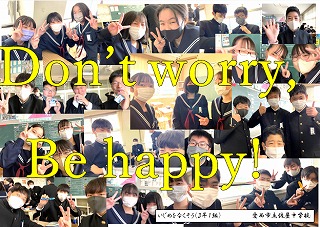現在、各クラスで人権ポスターを制作しています。事前に、身近にある人権問題について、自分たちができることを考えました。そして、皆に呼びかける標語やポスターデザインを考えました。どのクラスも工夫を凝らしたポスターが完成してきています。中学生という思春期の時期です。様々なことが起きてきますが、それをどのように解決していくかを学ぶことで、将来への「生きる力」が培われていきます。それには、一人一人が、現在起きている問題について真剣に取り組むことが何より大切であると思います。今後、皆さんがますます楽しく通える佐屋中学校にするために。