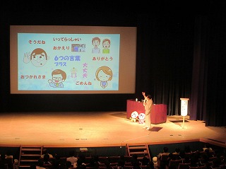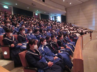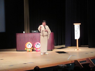 愛西市文化会館にて「愛西市人権講演会」が開催され、全校生徒と教職員が参加しました。「笑いと情けが人の輪をひろげる」と題して、講師の林家染二 氏(落語家)による講演と落語を聞きました。