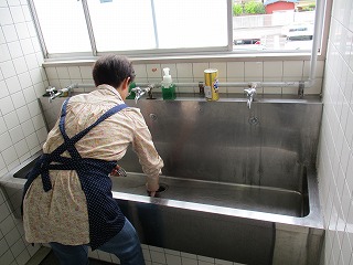 ボランティア団体「キキョウの会」の皆様に、手洗い場の清掃を行っていただきました。子どもたちのために、いつもありがとうございます。