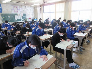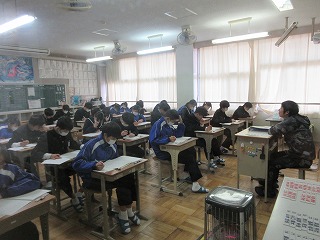 本日より、3年生を対象とした「第4回テスト」を3日間の日程で実施しています。進路選択に向けて、学習の成果を発揮してほしいと思います。