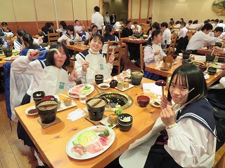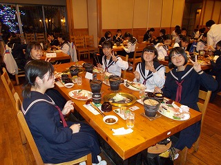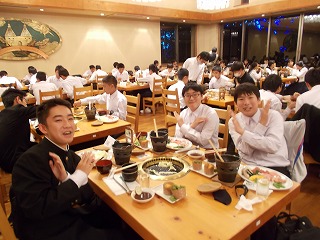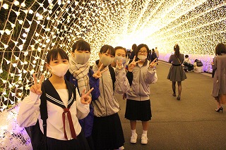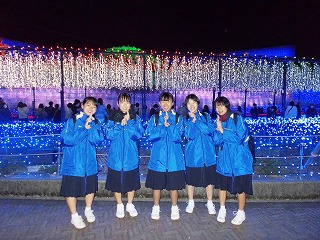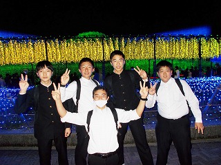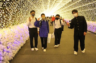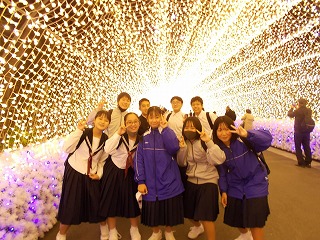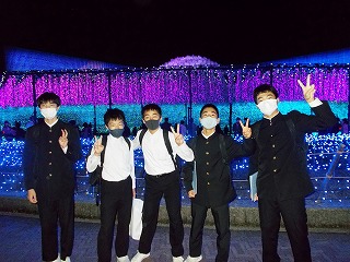 全クラスが集結した「なばなの里」でのイルミネーション、バーベキューの様子です。