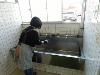 今月もキキョウの会の皆さんに活動を行っていただきました。今回は、北館1階の手洗い場やトイレの手洗い場をきれいにしていただきました。いつもありがとうございます。