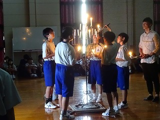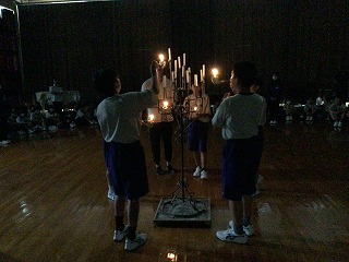 カレー作りのあと、信定ホールにて、キャンドルサービスを行いました。