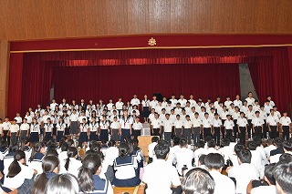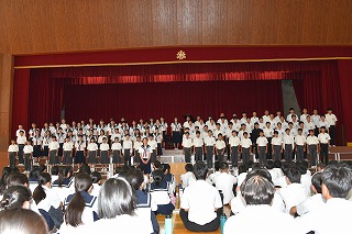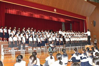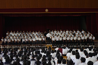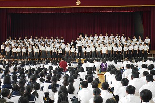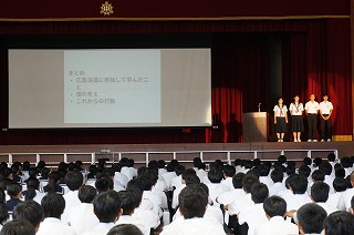 今年度、コロナ禍を経て、久々の1日開催の文化祭となりました。午前中はまず、広島平和派遣報告、1・3年生の「総合的な学習の時間」の学年発表を行いました。各代表者のすばらしい発表を聞き、全校で研修を深めました。その後、5年ぶりとなるブロック合唱コンクールを行いました。どのブロックも、3年生のリーダーを中心に練習を重ねてきた成果を遺憾なく発揮し、すばらしいハーモニーを体育館中に響かせました。