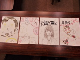 10/13(水)に予定しています文化祭「各クラス催し物」のポスターが、各クラスから届けられました。CGを使ったものや鉛筆で繊細に描かれたものなど、どのクラスのポスターも工夫が凝らしてありました。