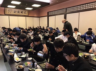 生徒たちは、朝の健康観察を終えてから朝食会場へと向かいました。