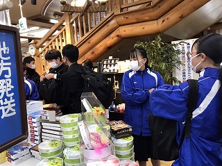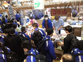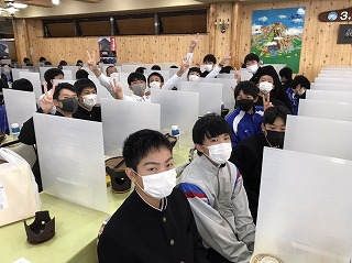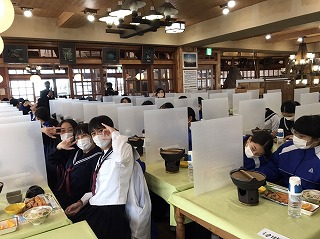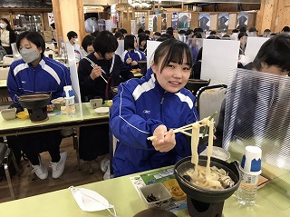 生徒たちは、お土産を購入後、レストハウスに移動し、昼食には山梨名物「ほうとう」を味わいました。