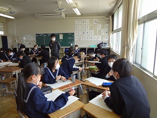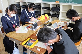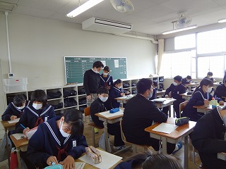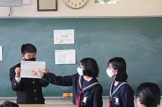 1年生は、少しずつ中学校にも慣れてきた様子がみられます。校内をまわって、どこに何があるのかも確認しました。学校を、自分たちの手でよりよくしていくための意見箱「未来箱」も見つけました。これからどんどん意見を寄せてください。学級役員も決まり、クラスごとのテーマも話し合いで決まりました。どのクラスも楽しそうな声が廊下に漏れてきていました。
