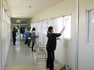 学校全体で、よりよい学校づくりに取り組んできました。最後の大掃除には、保護者有志の方々も参加してくださいました。生徒も先生も保護者も笑顔で、1年間の汚れを落としました。