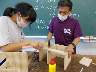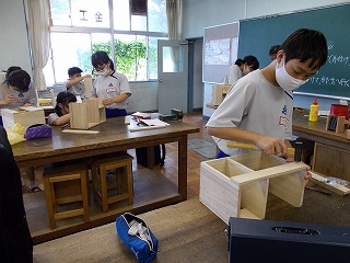 昨年度、3月の授業が急遽なくなったことで、技術の作品が完成できなかった人たちがいます。授業後、技術室を覗くと、2年生がもくもくとくぎ打ちをしていました。「釘がうまく打てませんでした」と、先生と一緒にくぎを打ち直していました。大人になったとき、それがまたよい思い出になりますね。