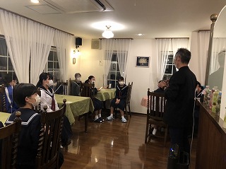 約2時間のバス移動で少々疲れ気味の生徒もいるようですが、ペンション到着時には、丁寧にオーナーさんへ挨拶をし、利用についての説明をしっかりと聞くことができました。