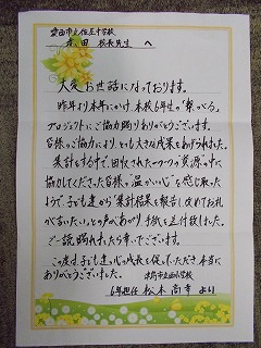 温かいお手紙に心がホワッとなりました。