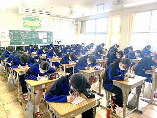 基礎学力コンクールを行って、基礎の力を培っています。2年通信「突破」には、「友達と問題を出し合う姿が多く見られ、学年全体で『高め合おう』とする雰囲気が感じられます。あくまで勉強は個々の戦いではありますが、周りの雰囲気に刺激をされることもあると思います。今週は『後期第1回テスト』があります。『勉強』『部活』『遊び』どれも大切なことではありますが、この1週間は『勉強』をする時間です。後悔のないように、やり切ってほしいと思います」とありました。