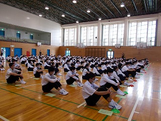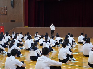 今朝、全校の皆さんに部活動再開に向けての話をしました。「2、3年生の皆さんが今まで夏の大会やコンクールに向けて、また、それぞれ目標を決めて頑張ってきた姿をずっと目にしてきました。また、1年生の皆さんも先輩と一緒に部活動をすることをずっと待っていたことと思います。今回の感染症流行によって、5月までの部活動が中止となり、8月までの大会等もすべてなくなりました。感染症を前にして、何もしてあげられない無力さを痛感しています。特に、3年生の皆さんの気持ちを察すると言葉にはなりません。しかし、大会はなくなっても部活動がなくなるわけではありません。3年生は7月の末まで部活動を行うことが可能です。7月11日からは、近隣校との交流も可能になります。今まで様々な困難を乗り越え、築き上げてきた伝統、皆さん一人一人が部活動からえたものや仲間は、一生の財産となるでしょう。この感染症を乗り越えたということは、これからの人生に大きな力となることと思います。顧問の先生と一緒に、この状況をプラスに換えていってください。できることがありましたら、いつでも力になりたいと思っています」この後、3年生は、学年主任の各務先生より「家族で話し合って、部活動の参加について考えてほしい。一人一人が出した意見を仲間は尊重してほしい」等の話がありました。