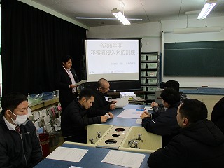 現職教育の一環として、保健指導部会主導による不審者侵入対応訓練(教職員向け)を行いました。