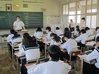 昨日は、第1回学校評議員会を開催し、今年度から運用している「学びの部屋(じっくり考えたり、先生に相談したりできる部屋)」をはじめ、タブレットやプロジェクターを活用した授業、ALTと行う英語の授業、感染症対策をしながら行う授業などを観ていただきました。「授業の雰囲気がすごく明るくて、私も受けてみたくなりました」「登下校ですれ違うと気持ちのよいあいさつをしてくれてうれしいです」等の温かいお言葉とともに「中学校の時期は一生に一度しかないから、教育活動を中止していくのではなく、工夫して行っていただきたい」とのお言葉もいただきました。全校職員にすぐに伝え、さっそく本日から実行していきます。ありがとうございました。