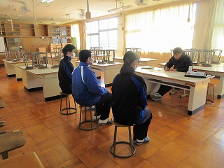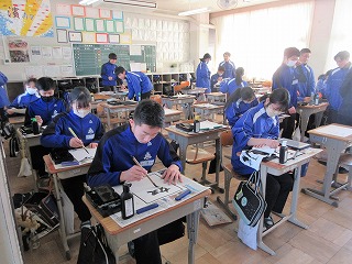 3年生は、本日から3日間の日程で「私立・専修学校一般入試」が始まり、受験生が早朝より出掛けて行きました。また、本日は入試を受けない生徒は、学校で面接練習や大志式に向けての準備、受験勉強に励んでいました。