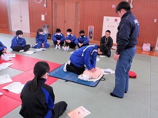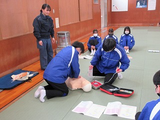 2年生では、本日も「救急救命講習」が実施され、消防署の職員による指導を受けました。