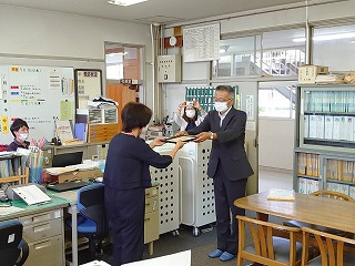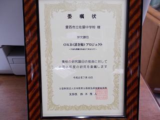 昨年度、全校で取り組んだ「OKB(置き勉)プロジェクト」が認められて、「今年度も学校の教育活動の推進を」と、日本教育公務員弘済会様より、本校の研究に対して委嘱を受けました。学校をよりよくするために、全校生徒、教職員がワンチームとなって取り組んでまいりたいと思います。