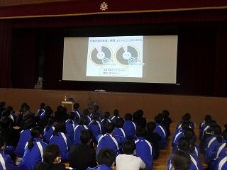 養護教諭による学校薬剤師という仕事についての紹介に続き、喫煙や飲酒、薬物に対する意識や、それらが心や体に与える影響について詳しくお話をいただきました。