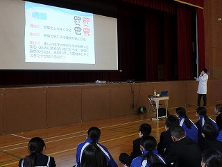 学校薬剤師の水田先生を講師としてお招きして「薬物乱用防止教室」を開催しました。