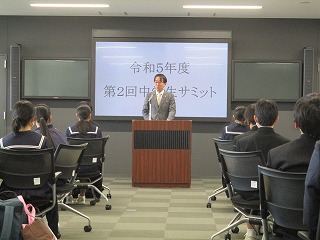 本日、市内の中学校の代表生徒が集まり「中学生サミット」が開催され、3名の生徒が参加しました。