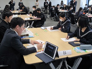 グループディスカッションでは、各校の主体的な取組について意見交換を行い。校則の見直しや学校祭の企画・運営、人権集会について発表しました。