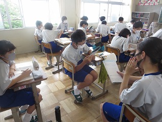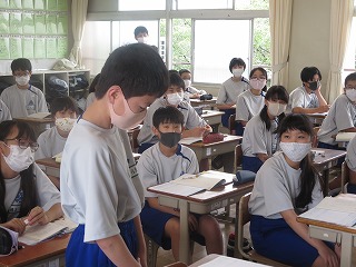 本校の道徳の授業では、自分の考えをもつと同時に、まわりの意見を聴いて、視野を広げることにも重きを置いています。ソーシャルデフィスタンスを保ちながらの意見交流は難しいところもありますが「他人の意見がいろいろ聴けておもしろかった」と、感想を述べる生徒もいました。