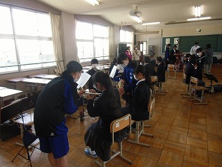 1年生の体験入部がありました。本日は第1希望の体験でした。顧問の先生や上級生から、優しく教えてもらう姿が見られました。来週は、第2希望の部活動を体験する予定です。