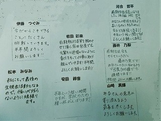 河合会長をはじめ、7名の執行部が意気込みを語ってくれました。よりよい学校を自分たちの手で創っていこうとする思いが、学校の勢いにつながっています。生徒の皆さん一人一人に寄り添っていきたいという気持ちもうれしいです。