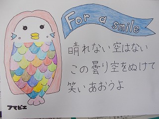 1年2組の生徒から、イラスト付き応援メッセージをいただきましたので、紹介します。