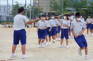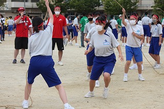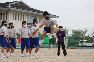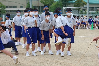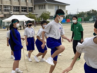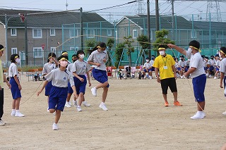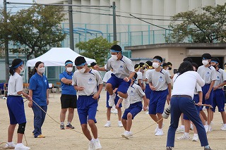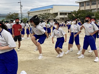「大縄跳び」は、今年初の種目で、どの学年も1位は、佐屋中ギネス認定となりました。中でも、1年2組は、佐屋中全体のギネス認定となりました。