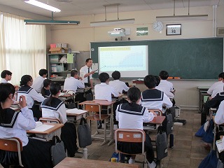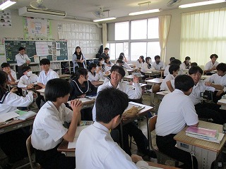 4時間目に2-4にて、現職教育研究の一環として、社会科の校内研究授業を行いました。地理的分野の「中国・四国地方では、交通網が整備され人々の生活にどのような変化が起きたのだろう」というテーマについて考える授業でした。