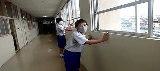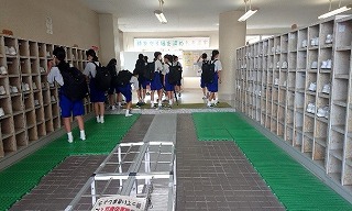 佐屋中学校では、朝読書の時間から一日が始まります。多くの生徒が早めの登校を心掛けており、朝8時には、昇降口前に多くの1年生の姿があります。友だちには「おはよう」と声をかけ、教員に「おはようございます」と大きな声であいさつする姿が見られます。その後、廊下で手洗いを済ませてから教室へ向かいます。