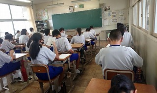 8時15分の時点で、1年生の80%の生徒が登校をしています。そして、各学級では8時20分にはほとんどの生徒が朝読書を始めている状況です。最初は、教員や学級委員が「朝読(あさどく)の時間だよ」と声を掛けていましたが、最近では、自然に静かな雰囲気をつくることができています。