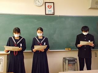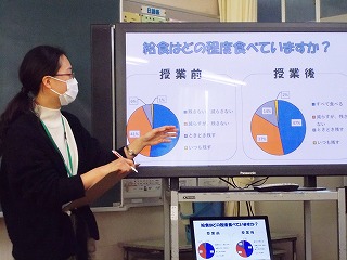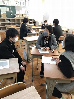本日、学校保健委員会を開催しました。生徒が健やかに成長するため、生徒、教員の代表が参加して課題となることを話し合いました。本日のテーマは「感染症に立ち向かうためには」として「教室環境」「食育」について意見交換しました。「給食のことを先生方と話すことがなかったので、今回、自分の意見を伝えることができてよかったです(伊藤君)」「アンケートで、皆さんが食事に対して思っていることを知ることができ、自分たちも環境を改善していくことができたらと思います(白井さん)」「先生方に、教室の環境(室温と湿度)について、検証結果を報告するとき、緊張したけど貴重な体験ができてよかったです。今まで食事について気にしてなかったけど、いろいろなものを食べることが大切だと感じました(中山君)」「コロナに負けない体をつくるには、嫌いだから食べないではなく、まずは何でも食べてみることが大切」とご助言がありました。