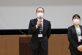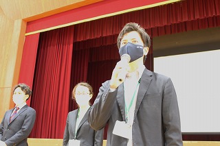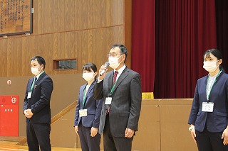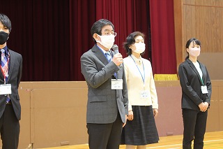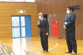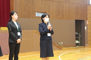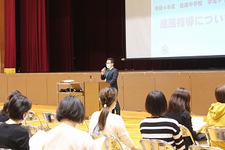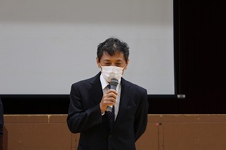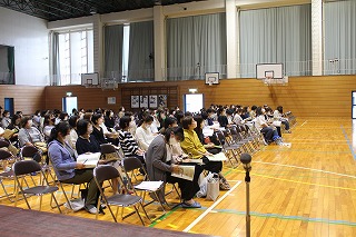 PTA総会後、学校説明会を行いました。教職員紹介では、保護者の皆様は、要項の名簿と照らし合わせて確認されていました。その後、年間行事予定、令和5年度入試の変更点について説明をしました。