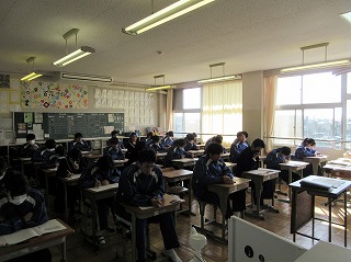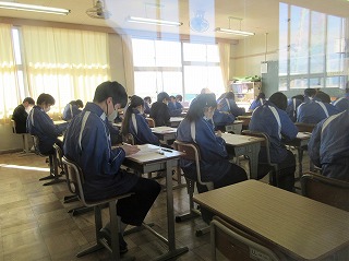 3年生は、本日から中学校で最後の定期テストとなる「第5回テスト」が始まりました。また、1・2年生は、昨日に引き続き「第4回テスト」を実施しました。