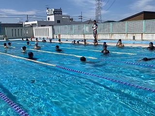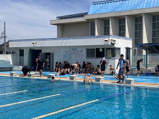 3年ぶりの水泳の授業が行われています。すごく暑いので、とても気持ちよさそうです。