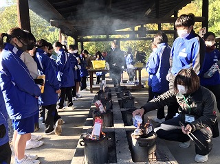 1年生「野外活動」朝の集い・朝食づくり