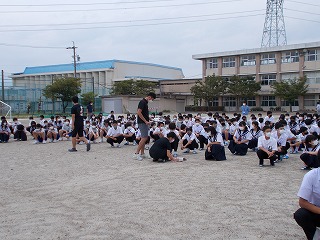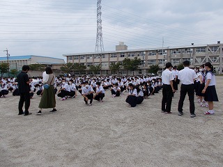 夏休みが明け、学校が始まりました。放送朝礼では、「大変な今こそ、様々なことについて、考え、行動する練習ができるチャンスです。一人ではなく、まわりの人と一緒に、乗り越えていきましょう」と、伝えました。避難訓練も行いましたが、しゃべることもなく、速やかに、人との距離をとって行うことができました。訓練後、保健主事の蒔田先生から、愛西市の予想される災害(震度6強、浸水など)について、また、5分以内で次の避難行動をとることが大切であることなどが説明されました。
