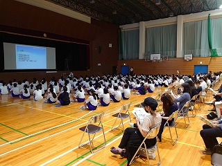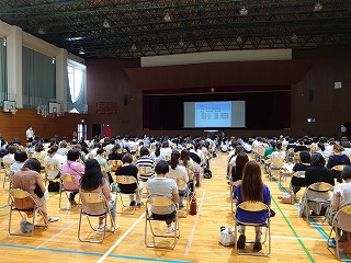 7月4日(金)に、3年生徒と保護者対象に進路説明会を開催しました。多くの保護者の皆様に来校していただき、ありがとうございました。学校は再開しましたが「入試はどうなるのか」「昨年までとちがいはあるのか」等、不安も多いと考え、第1回目をできる限り早くの日にちで開催させていただくことにしました。「高校の体験入学は、保護者も行くことができるのか」という質問も出ました。「多くの高校からは、保護者1名はよい」という回答はいただいています。その他、学校によって、条件等が違う場合もありますので、案内をしっかり確認していくようにお願いします。