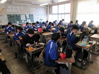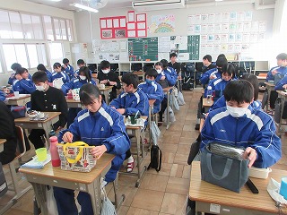 2年生では、本日が「立志歩行」の予備日となっていたため、”お弁当”を持参しての登校日となりました。