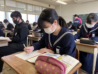 「受験生」としての第一歩となる第1回進路希望調査を実施いたします。愛知県の公立入試は複合選抜制度で、他県とは違った独自の入試方法となっています。今後、担任と進路指導担当で教えながら進めていきますのでご安心ください。