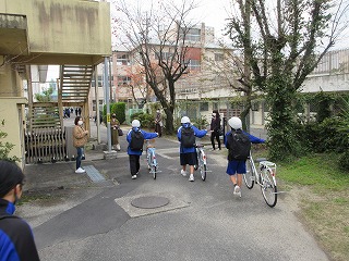 「おはようございます」朝から、生徒の元気な声だけでなく、PTA役員さんの明るい声も交じって、さわやかな一日がスタートしました。すてきなあいさつを交わした後、役員さんから「いいねカード」をもらって、生徒の目元も緩んでいました。